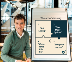 Op een gegeven moment stelde ik voor om heldere criteria te definiëren en te beginnen met kiezen. De VP pauzeerde en vroeg oprecht: “Waarom moeten we eigenlijk kiezen?”